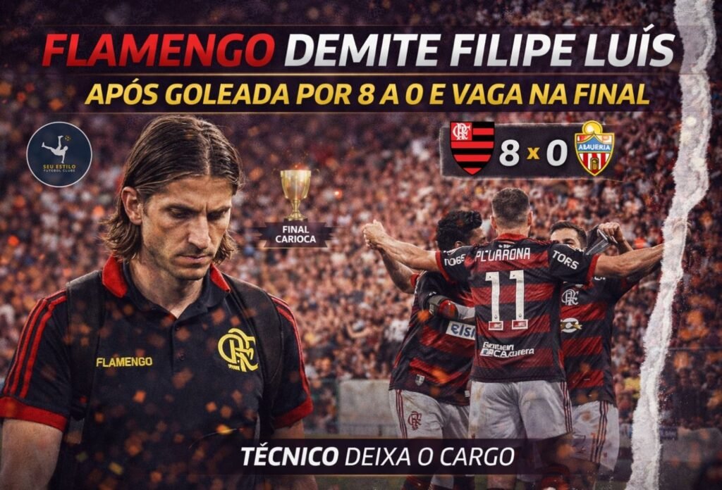 O Flamengo anunciou na madrugada desta terça-feira 02/03 a demissão do técnico Filipe Luís. A decisão ocorreu poucas horas depois da goleada por 8 a 0 sobre o Madureira, resultado que classificou o time para a final do Campeonato Carioca 2026. A saída acontece em meio à pressão acumulada após derrotas recentes em decisões nacionais e continentais.